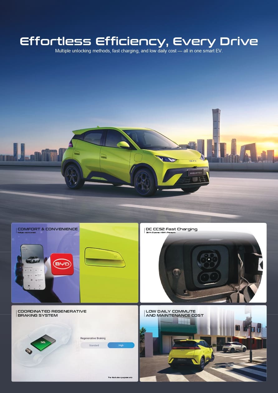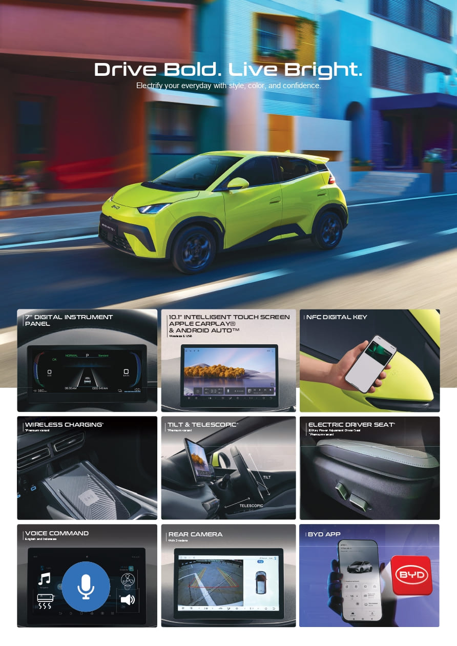 BYD Atto 1 By admin|2026-02-05T04:15:44+00:00February 5, 2026|brosur|0 Comments Share This Story, Choose Your Platform! About the Author: admin Related Posts BYD DOLPHIN BYD DOLPHIN BYD M6 BYD M6 BYD ATTO 3 BYD ATTO 3 BYD SEAL BYD SEAL Leave A Comment Cancel replyComment Save my name, email, and website in this browser for the next time I comment.